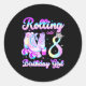 Sticker Rond Kids Rolling Into 8 Roller Skating 8th Birthday Gi