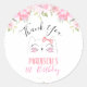 Sticker rond rose Fleur Chaton Visage et Bow Anniversaire Classic Chaton sucré visage thème d'anniversaire autocollant avec un visage de chaton mignon, arc rose, un arrangement floral pour la plupart rose et quelques points de parties scintillant faux or. Idéal pour une fête d'anniversaire à thème pour les chatons de petite fille.
