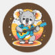 Ce design graphique dynamique présente un koala charmant, qui arbore joyeusement une guitare. La scène rayonne de chaleur et de joie, l'expression sereine du koala renforçant l'atmosphère animée. Les couleurs vives et la composition ludique évoquent un sentiment de bonheur et de fantaisie, ce qui en fait un régal visuel délicieux.