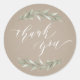 Autocollant de remerciement de calligraphie moderne avec un design de feuillage de verdure aquarelle sur fond de papier kraft rustique, simple et élégant, idéal pour un mariage rustique, un mariage printanier et un mariage estival.