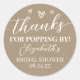 Mes autocollants ronds classiques Kraft Thanks for Popping By Bridal Shower Popcorn seront parfaits pour la fête que vous organisez. Il suffit de les appliquer sur un cadeau pour un détail parfait que vos invités adoreront.