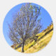 Un dessin photographique d'un arbre solitaire à flanc de colline.