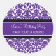 La faveur de Merci étiquette pour la fête d'anniversaire d'une fille que vous pouvez customiser avec votre nom et texte. Amusement et moderne dans le pourpre foncé, motif vintage de damassé florale classique noire et blanche. Ces autocollants font une addition élégante et sophistiquée aux cadeaux d'anniversaire.