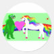 Sticker Rond La licorne voit le dinosaure