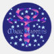 Un symbole dans les teintes de lilas, de violet, de violet et de magenta forme la forme familière utilisée pour décrire les déesses et les sorcières avec des étoiles bleues et les mots "Magic Happens".