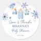 Neige en amour flocons de neige bleu bébé vêtements sur une ligne baby shower d'hiver merci préférez les autocollants modèle, bleu poussiéreux boho flocons de neige doodas avec le coeur bébé garçon vêtements bleu sur une ligne baby shower faveur autocollants boho baby shower merci autocollants neige en amour avec bébé baby shower d'hiver imprimé faveur autocollants