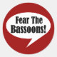 Cette bulle de présentation de musique design dit Fear The Bassoons! C'est un cadeau amusant pour n'importe quel joueur de basson dans un orchestre ou un groupe.