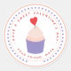 L'autocollant de la Saint-Valentin moderne pour les enfants, les sacs de cadeaux, pour la fête, pour les enseignants en rouge et violet avec gâteau de tasse graphique.