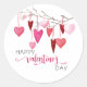 Cet autocollant pour les vacances mignon présente une branche avec des coeurs pendus dans des nuances de rose avec le texte "Joyeuse Saint-Valentin".