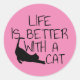 Sticker Rond La Vie Est Meilleure Avec Un Chat