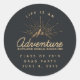 La graduation enregistre l'autocollant de date avec une illustration de couleur or sur un arrière - plan gris-noir. Conçu avec une illustration d'une montagne avec les rayons de soleil brillant vers l'extérieur de derrière. La typographie dit : La vie est une aventure explorer la découverte de rêve.