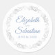Sticker Rond Lacy Silver Filigree Elegant Bleu sur Mariage blan