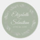 Sticker Rond Lacy Silver Filigree Élégant Mariage Vert Sage