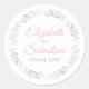 Sticker Rond Lacy Silver Filigree Élégant rose sur Mariage blan