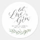 Calligraphie moderne "Let love grew" script et aquarelle rustique vert design feuille, chic et élégant. personnalisez avec les noms de couples et date, autocollants de grand faveur pour mariages, douches nuptiales, baby showers ou tout événement spécial.
