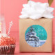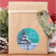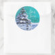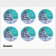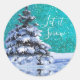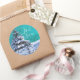 Sticker Rond Laisser neiger hiver arbre turquoise bleu blanc