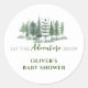 "Let The Adventure Begin" Célébrez le baby shower avec cette aventure dans la forêt sauvage commencez l'invitation à baby shower thématique avec une forêt de pins aquarelle minimaliste moderne rustique.