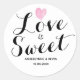 Autocollant personnalisé simple d'amour doux avec un cœur aquarelle rose au-dessus du message l'amour est doux. Vous pourrez facilement personnaliser avec des noms et la date. Cela ferait une belle touche pour votre beau mariage, douche, anniversaire et plus encore.