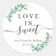 Cet autocollant rond Feuille classique et symétrique est parfait pour un mariage de jardin au printemps et est une excellente façon d'ajouter une touche personnelle à vos faveurs. Ce design avec un texte : "l'amour est doux" représente le bonheur du couple marié, avec l'image de deux branches d'arbres avec des feuilles de mangrove symétriquement conçus et surtout, peuvent être facilement personnalisés.