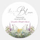 Célébrez la future mariée avec une fête de douche nuptiale aux fleurs sauvages spéciale et unique en son genre ! Notre autocollant rond classique "Notre amour est en fleurs" présente un bouquet de fleurs sauvages de jardin et une écriture calligraphique délicate. Surprenez vos invités avec une invitation inoubliable qui capture parfaitement les idées de douche nuptiale féminines et vibrantes que vous avez - le tout dans un beau paquet !