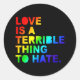 Sticker Rond L'amour est une chose terrible à haïr. typographie