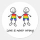 L'amour n'est jamais faux t-shirts et cadeaux - design gay pride avec deux personnes aux couleurs arc-en-ciel tenant un coeur rouge.