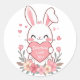 Sticker Rond Lapin adorable avec un coeur d'amour