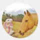Sticker Rond Lapin blanc et Cheval jaune