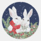 Sticker Rond Lapin de Noël Lapin Neige Vert Vacances Art