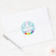 Sticker Rond Lapin de Pâques avec des oeufs arc-en-ciel, Joyeux