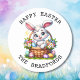 Sticker Rond Lapin de Pâques en cartoon mignon dans un panier P
