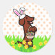 Sticker Rond Lapin de Pâques Rouge Smooth Haired Dachshund