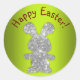 Sticker Rond Lapin Parties scintillant Argent Joyeux Pâques