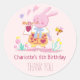 Sticker Rond Lapin rose Whimsical en Aquarelle de jardin