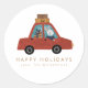 Sticker Rond Lapin Voiture De Noël Personnalisé Joyeux Vacances