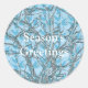 Un design de Noël art d'un arbre sans feuilles, neige tombant sur une nuit froide avec des lunes dans le ciel bleu.