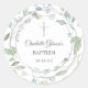 Sticker Rond Laurel Garland Faux Argent Baptême Christening