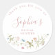 Un élégant couronne de fleurs sauvages aquarelle délicate encadre vos détails d'événement. Des palettes pastel de rose blush doux, blanc cassé, beige, bleu poussiéreux et verdure botanique, simples et romantiques. Grands autocollants de faveur de fête de mariage bleu pour une baby shower rustique moderne, une fête de mariage de jardin champêtre et une fête bohème bleu poussiéreux au printemps et en été.