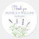 Peinture aquarelle de lavande. Des autocollants ronds d'illustration de plantes violettes. Lavande de belles fleurs de jardin. stickers Merci. Parfait pour les faveurs Mariages, douche nuptiale. Personnalisez-le avec vos noms et votre date.