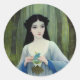 Sticker Rond Lave-encre illustration de la belle femme à Woods