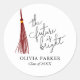Fun et moderne fête de graduation faveur autocollant avec texte de typographie avec une citation inspirante qui dit "l'avenir est brillant" avec une illustration de maroon tassel.