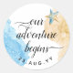 Sticker Rond L'aventure commence aquarelle Côte Plage Mariage
