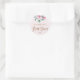 Autocollant personnalisé élégant et moderne avec lavis floral rose et vert menthe à l'aquarelle, typographie manuscrite avec reflets cuivrés et petit cœur. +++++++++ Facile à personnaliser avec le nom de la future mariée. ++++++++++ Convient pour les mariages et les fêtes de mariage glamour modernes et tendances du printemps et de l'été.