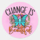 "Change is Beautiful" citation papillon inspirante sur autocollants faits sur mesure pour emballage cadeau, artisanat ou fournitures de fête. Souvenirs de la beauté et de l'émerveillement de la transition de la chenille, cocon, et papillon. Super idée cadeau.