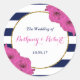 La collection chic et moderne de luxe mariage est ornée d'un arrière - plan classique rayé bleu marine et blanc accentué par de belles roses roses et un cadre en feuille d'or imitation. Ces autocollants sont faciles à personnaliser et seront la faveur parfaite pour tout mariage, douche nuptiale, fête d'anniversaire, fête de fiançailles ou toute autre occasion spéciale.
