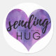 Un coeur d'aquarelle violet avec le message envoyant un autocollant d'étreinte socialement distant. Un doux ajout aux lettres, cartes postales, colis, etc.