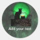 Une silhouette du chat noir de Théophile Steinlen pour le club Le Conversation Noir dans un cadre moderne pour la Saint Patrick avec le chat aux yeux verts, une pleine lune verte, une vigne aux shamrocks et une marmite d'or.