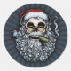 Crâne du Père Noël avec longue barbe blanche, chapeau du Père Noël, lunettes rondes, et chanter un cigare fumant. Dessin couleur, stylo & encre sur t-shirts, sweatshirts, cartes & cadeaux.