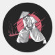 Sticker Rond Le guerrier de Samurai frappe avec Katana