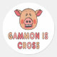 Gammon Is Cross montre un cochon qui ronfle, pleure et rougit de colère et de frustration avec les mots "Gammon Is Cross" en dessous. Humour avec un point.